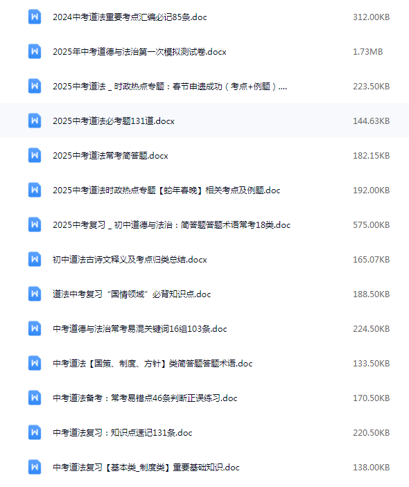 通过百度网盘分享的文件:29套打包!2025道德与法治中考精品资料一键打包下载
